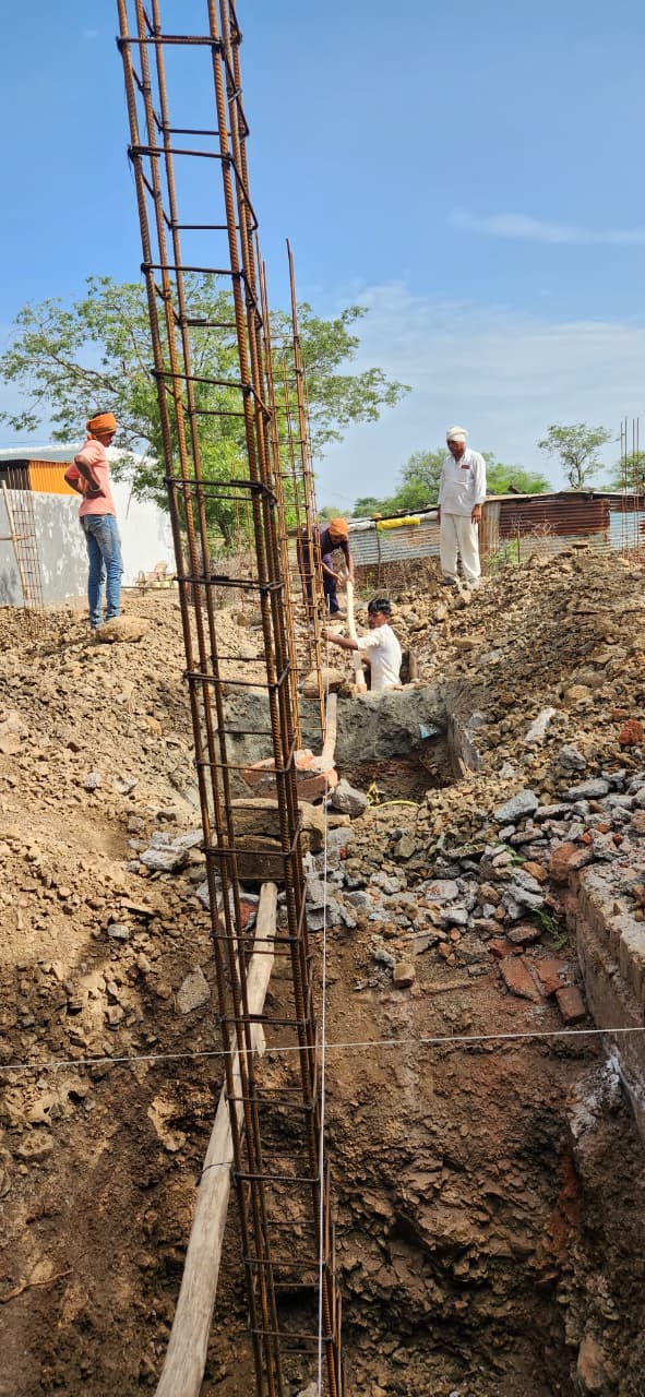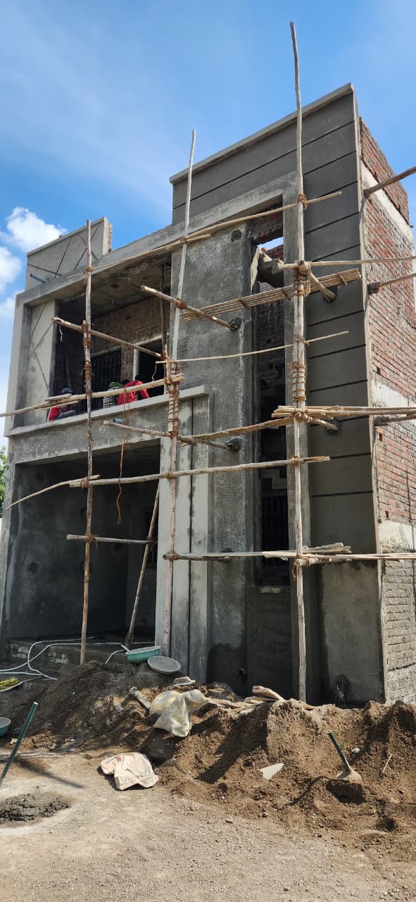 Ongoing construction work including structural development, brickwork, and plastering. Maintaining high safety and quality standards.